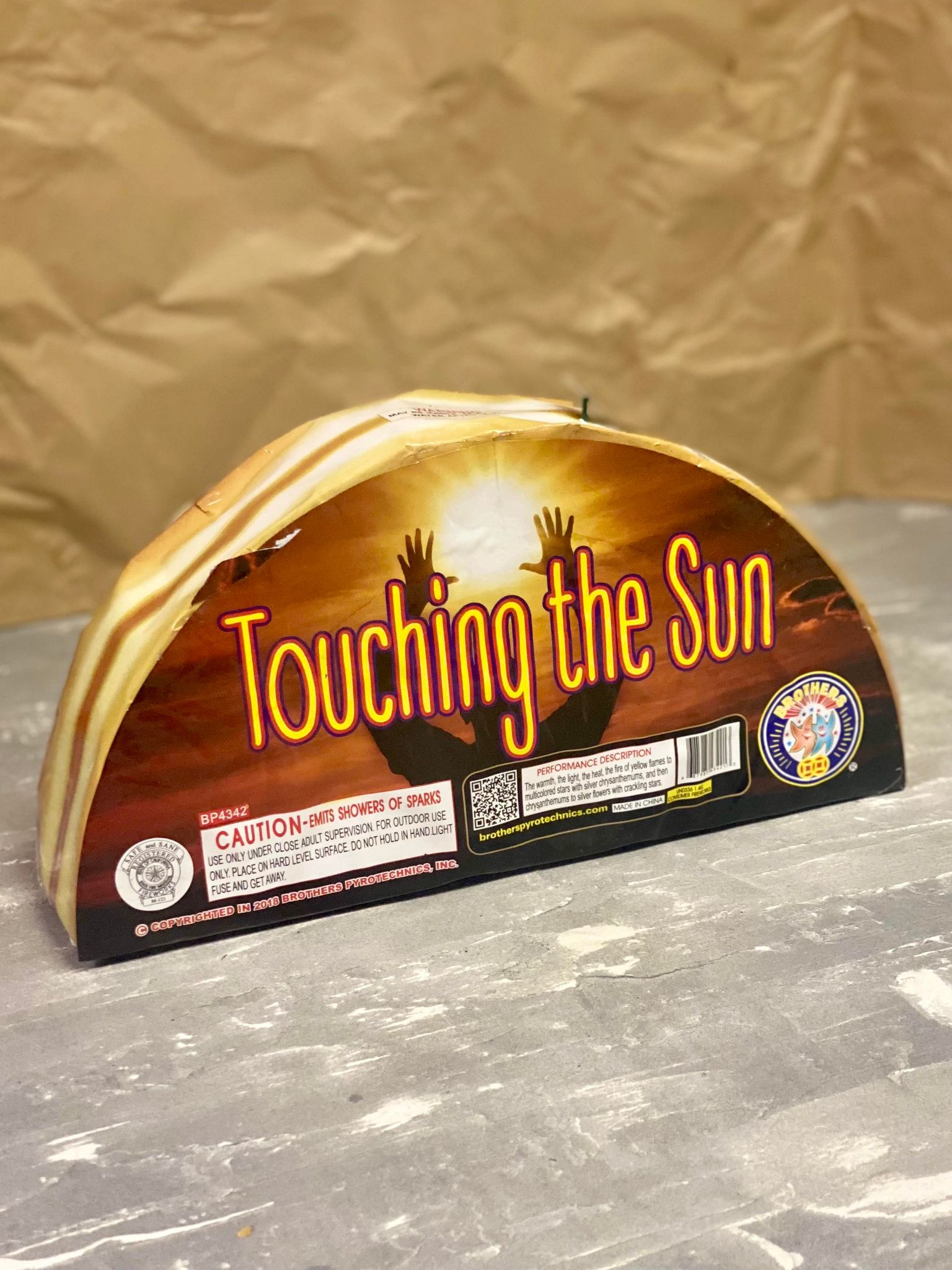 You won’t get burned with Touching The Sun! This fountain, full of golden-y goodness, starts radiating with a beautiful flow of sparkling golden illumination, then surprises with a transcending display of popping and sizzling multicolored stars with silver chrysanthemums. Next up? Angled flames resembling blazing sun rays release fiery hot sparks that transform into a scorching lava flow and are quickly followed by a HUGE burst of fully ignited crackles!