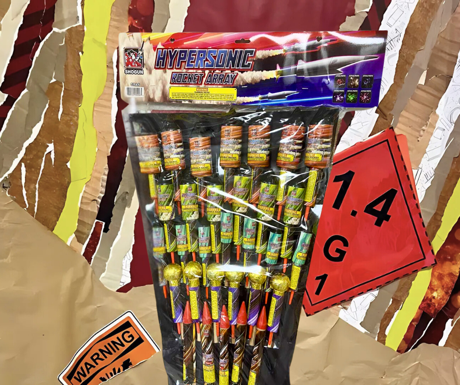 Rocket Man's Dream Realized! The Hypersonic Rocket Array consists of thirty-one high-flying rockets soaring in five varying sizes, offering fifteen exciting effects and TONS of vibrant colors!