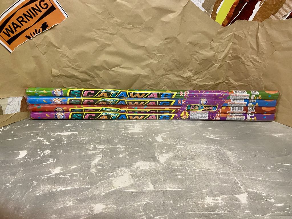 Get ready for a rambunctious display with Skalawag! Each mischievous Roman candle fires off 8 thrilling shots of sparkling silver glitter, bursts of fiery red and blue stars, delayed crackles that add a cheeky twist, or a wave of red and green that light up the sky with playful energy. Perfect for those who love a little bit of fun and mischief in their fireworks!