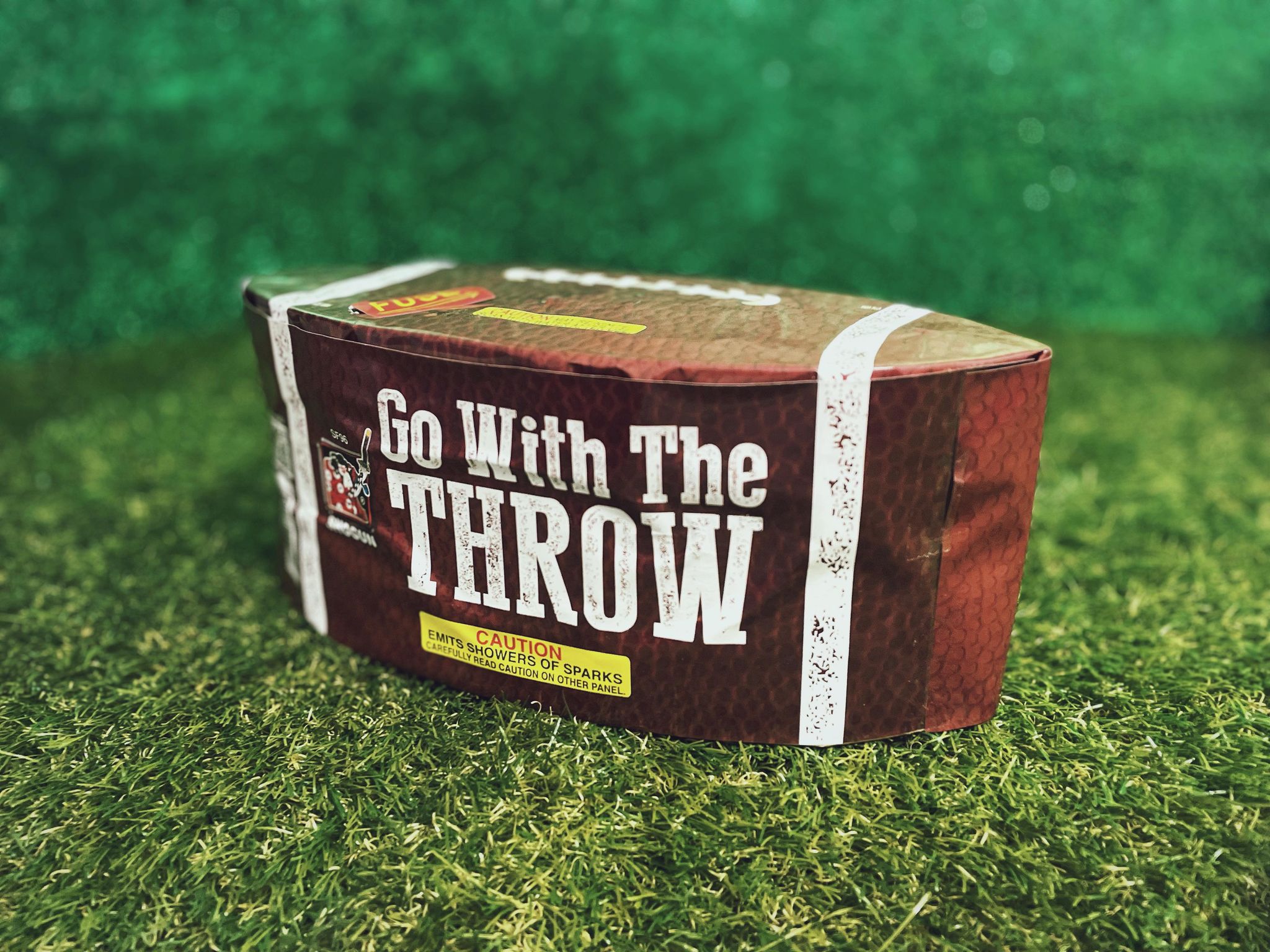 This football-shaped fountain is a great catch! Go With The Throw tosses a team-full of sporty colors like red, gold, blue, green, peach, and silver and pairs them up against high-performing effects like strobe, crackle, and a HUGE stadium-sized spray of sparks! Go team go!