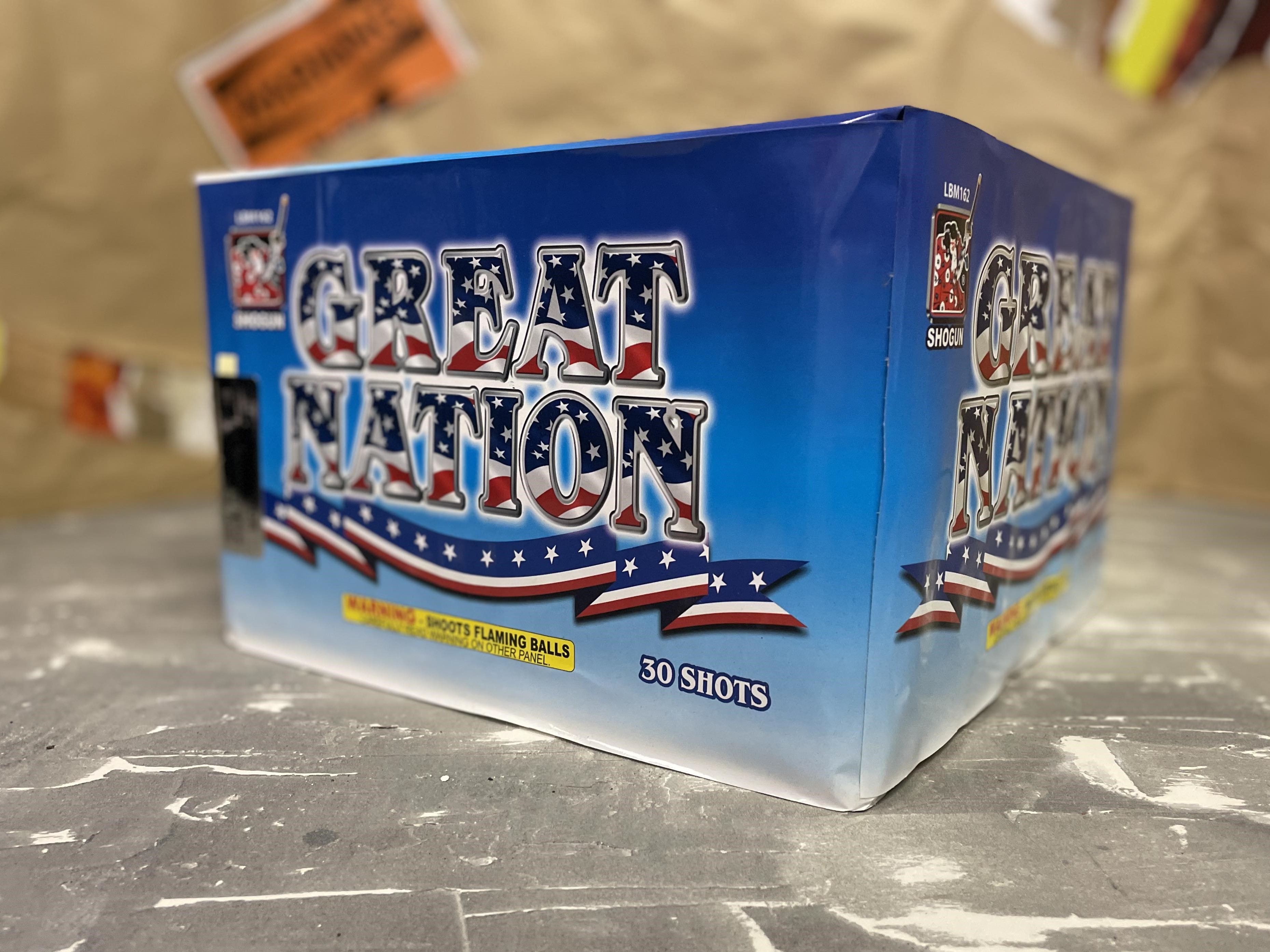 I pledge allegiance to the flag... and to our Great Nation! This repeater launches thirty quick shots of patriotic blue mines bursting into red breaks and silver glitter that shimmers from sea to shining sea!