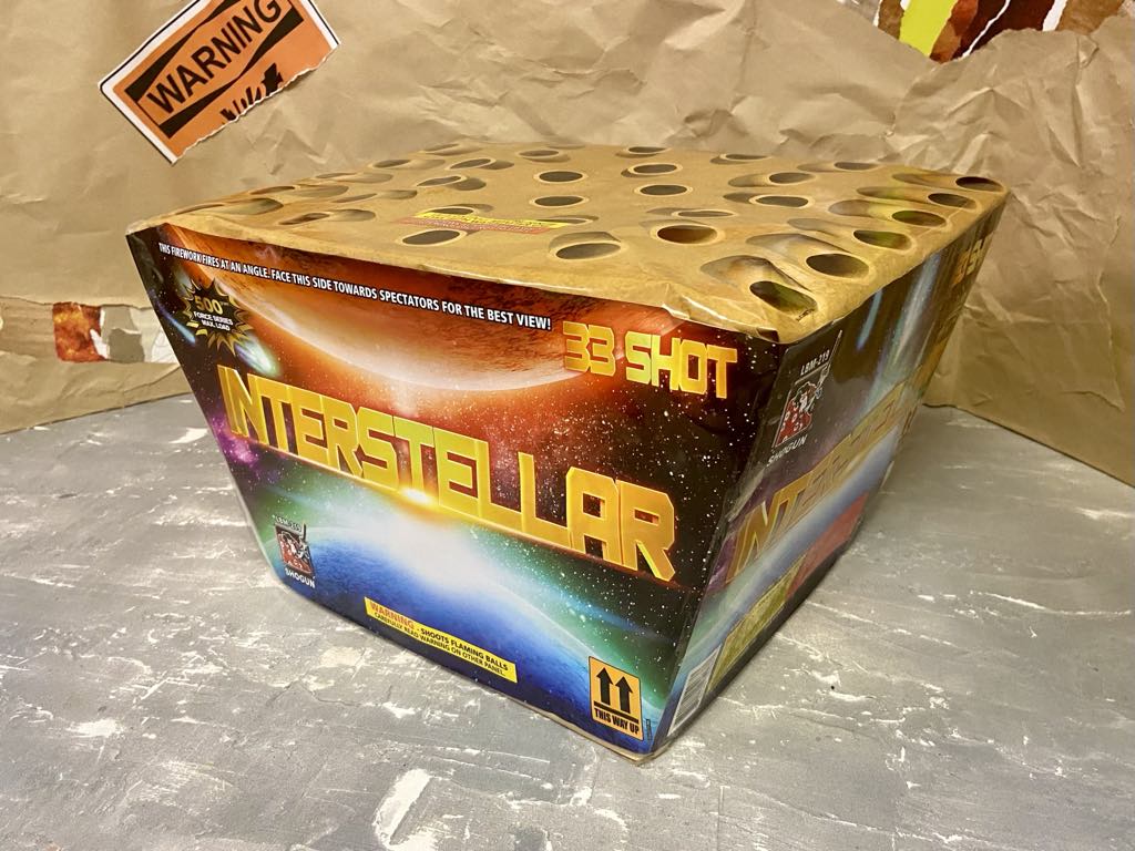 Embark on a voyage to deep space with a fan of thirty-three intense shots unveiling rows of blue bouquet with silver spinning jets followed by vast rows of gold palms with powerful crackle! Feel the sensation of zero gravity with a row of floating falling leaves just before warp speed takes you to an intense finale!