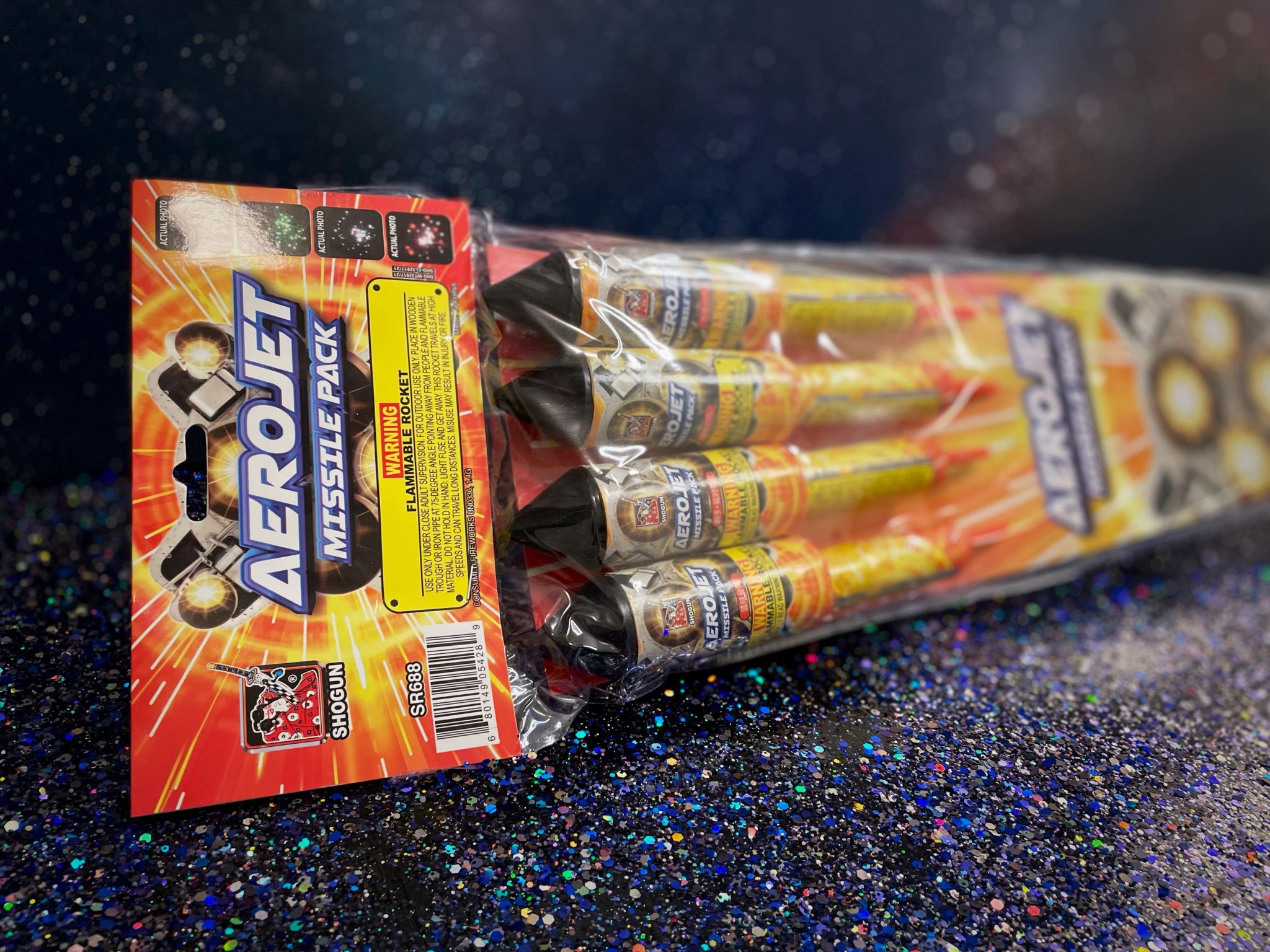 Get ready to launch with Aerojet Missiles! This four-pack rocket assortment gives an impressive airshow with loads of colors and fun effects! Each rocket features unique effects such as crackles, multi-colored stars, and gorgeous glittering strobes!